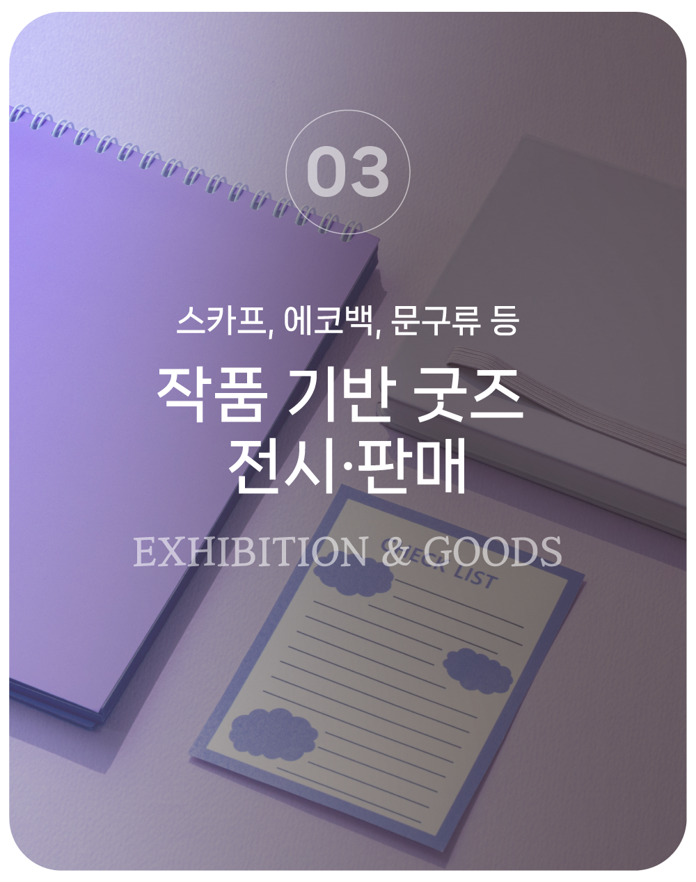 이곳에서는 전시·굿즈·체험·카페·대관이 어우러져, 예술과 일상이 조화를 이루는 특별한 경험을 선사합니다.